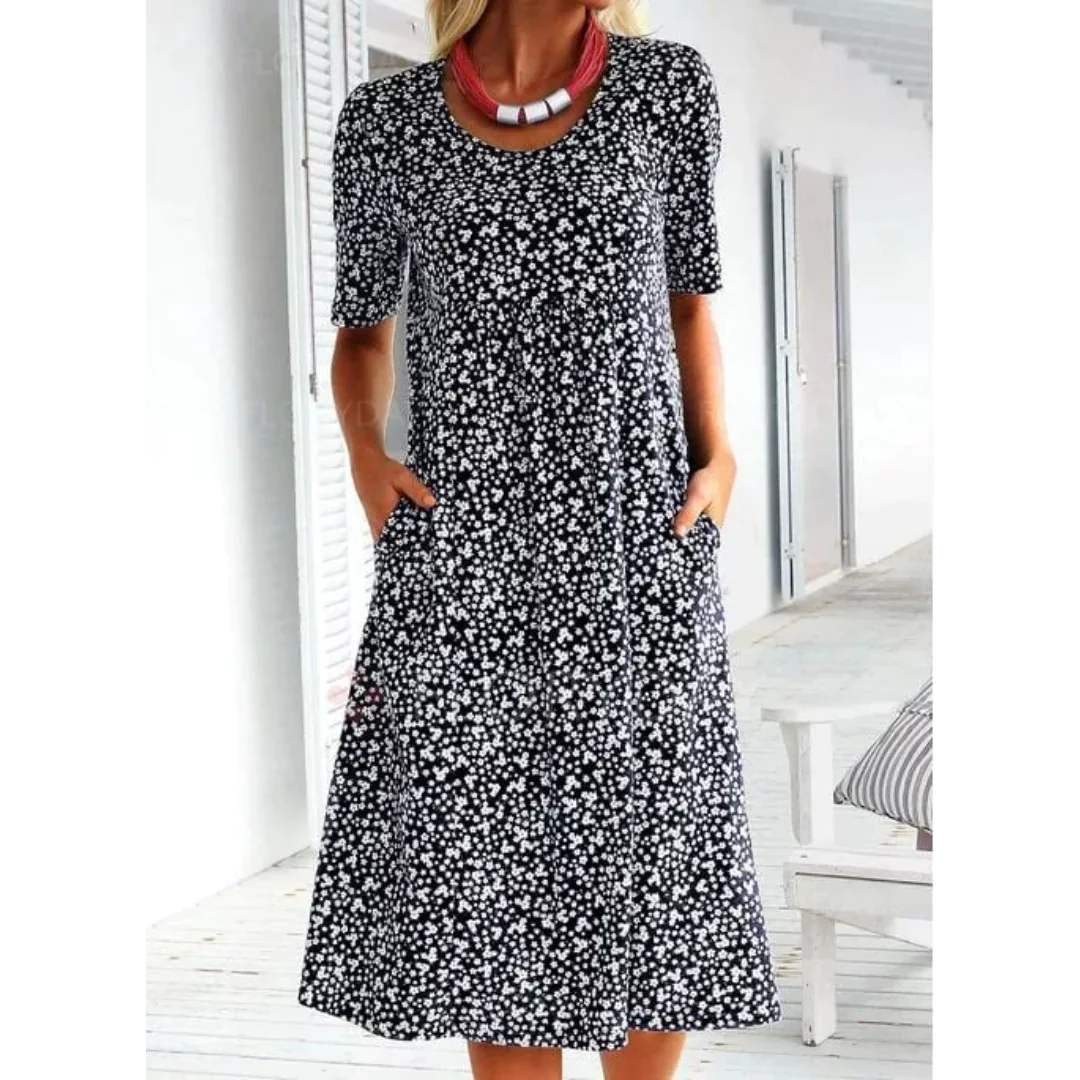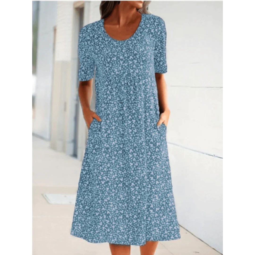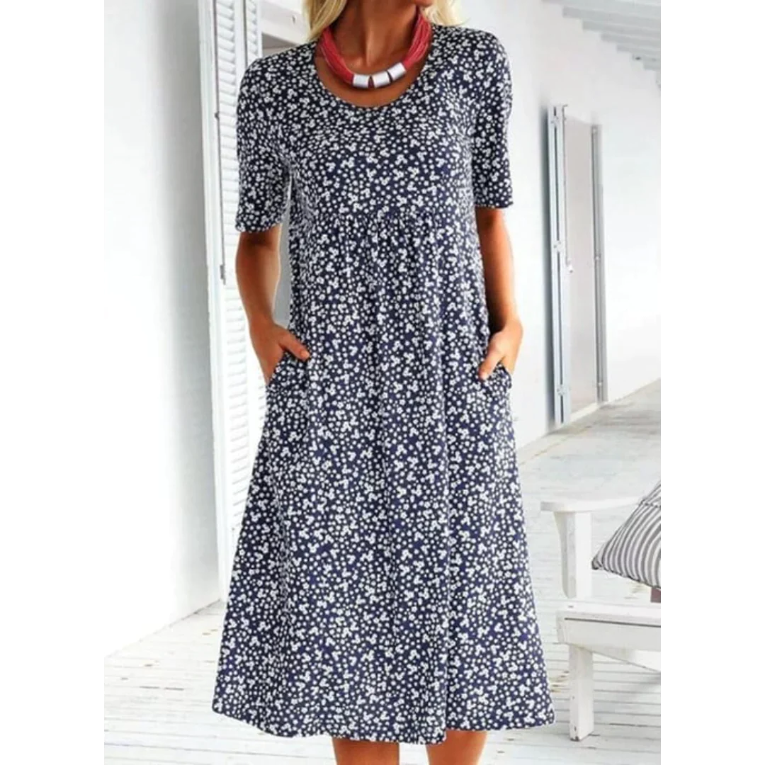 Adnha - Blumige Leichtigkeit: Lässiges Kleid mit Rundhalsausschnitt